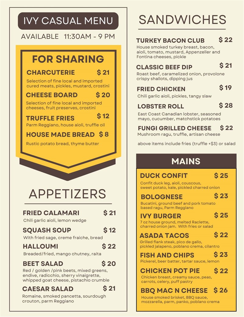 Casual Menu